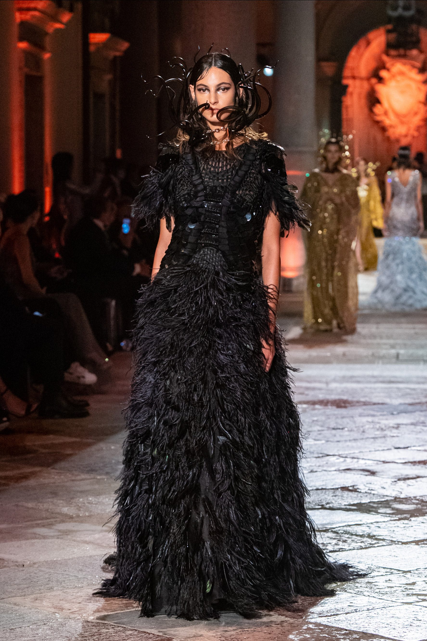 Alberta Ferretti ha reso omaggio alla città di Venezia, museo a cielo aperto ricco di storia e di cultura, con una spettacolare sfilata a Ca’ Rezzonico, sede del Museo del Settecento Veneziano. La sfilata "Omaggio a Venezia" è un tributo per i 1600 anni dalla fondazione di questa città unica al mondo: le modelle hanno indossato abiti preziosi e lucenti come oro liquido, ispirati agli arazzi e alla grande arte veneziana.