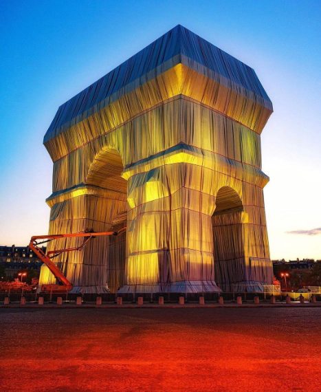 L'Arco di Trionfo "impacchettato" è l'opera postuma di Christo, artista bulgaro venuto a mancare nel 2020. È stata realizzata con la supervisione del nipote Vladimir Yavachev, seguendo fedelmente il suo progetto originale. Il monumento è stato coperto con 25.000 metri quadrati di tessuto in polipropilene azzurro argentato e 3.000 metri di corde riciclabili rosse.