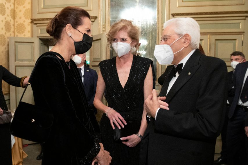 • Sergio Mattarella con Laura Mattarella in Giorgio Armani