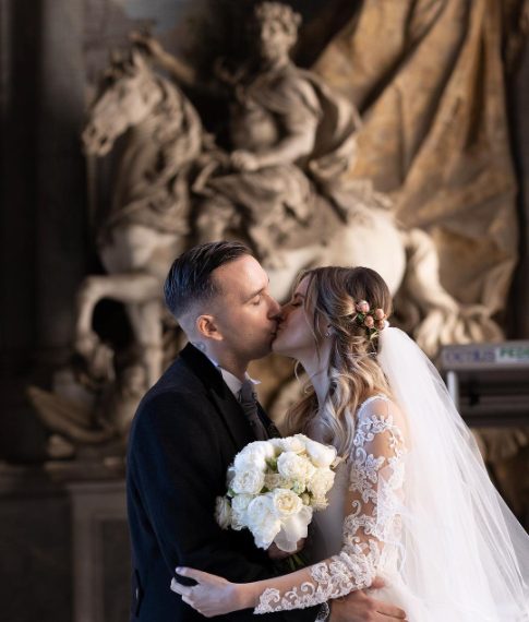 Briga e Arianna Montefiori si sono sposati, hanno pronunciato il fatidico sì nella chiesa di San Pietro, a Roma, dando vita a una cerimonia da sogno. L'ex cantante di Amici è apparso elegantissimo in uno smoking firmato I sarti italiani, mentre la moglie ha puntato su due diversi look principeschi e total white firmati Atelier Emé.