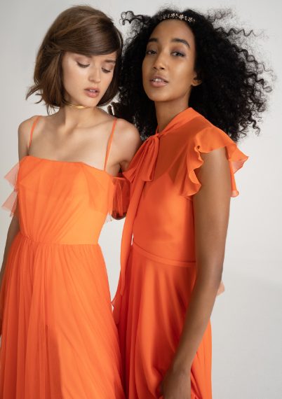 Un'esplosione di colore: la linea Bridesmaids di Vera Wang veste damigelle e invitate con abiti dalle linee semplici, adatti a molti stili e occasioni diverse. Minidress, jumpsuit scollate e abiti con lo spacco nei toni del fucsia, dell'arancio e del blu.