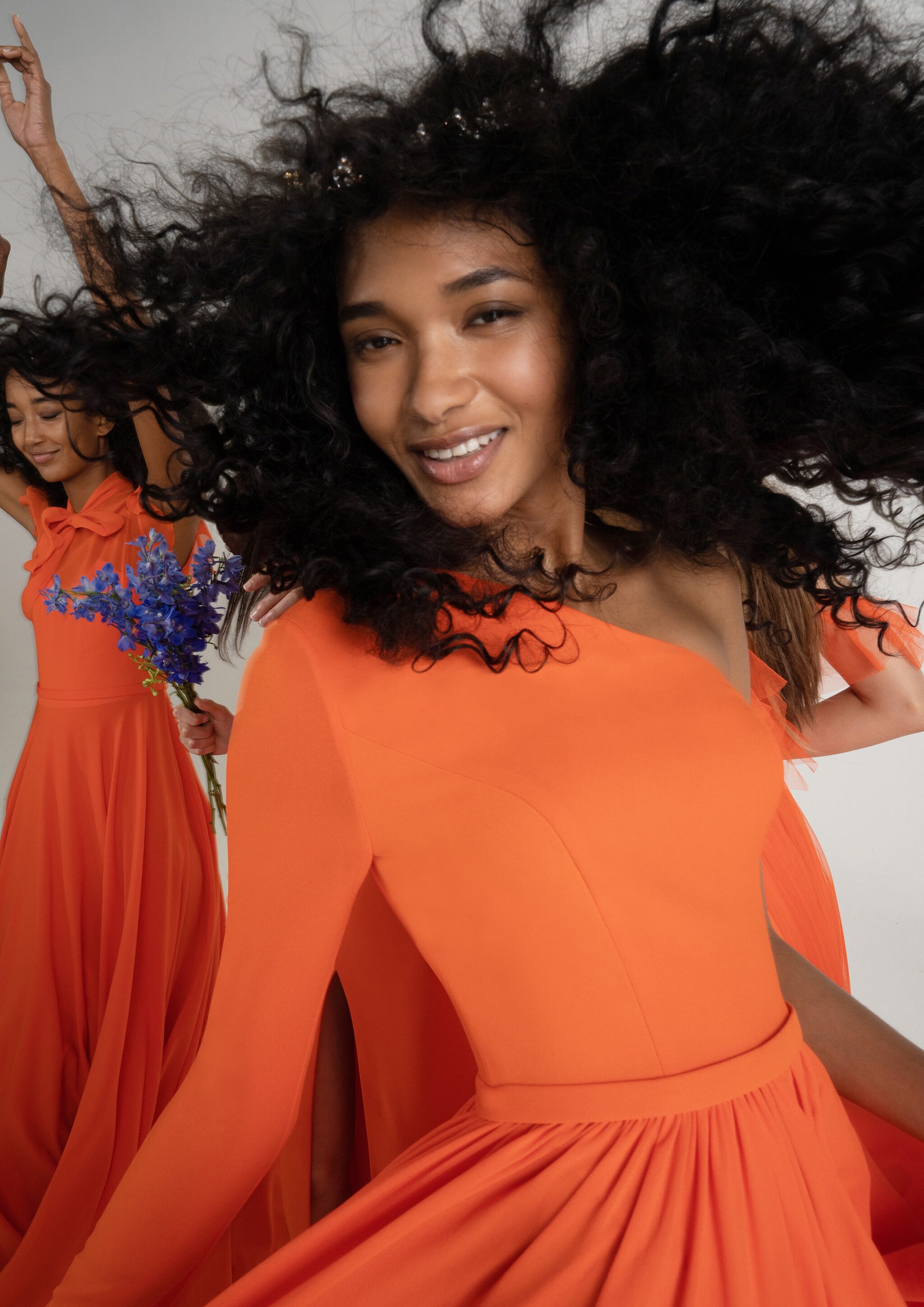 Un'esplosione di colore: la linea Bridesmaids di Vera Wang veste damigelle e invitate con abiti dalle linee semplici, adatti a molti stili e occasioni diverse. Minidress, jumpsuit scollate e abiti con lo spacco nei toni del fucsia, dell'arancio e del blu.