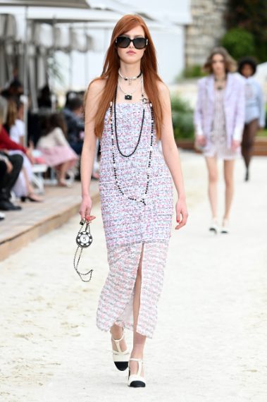 Il 5 maggio 2022 Chanel ha presentato la collezione Cruise 2022/2023 con una sfilata sulla spiaggia a Montecarlo. In passerella tute all over ispirate al Gran Premio di Formula1, giacche in lamé, abiti di paillettes e l'iconico tailleur in tweed in bianco e rosa, indossato con le sneakers.
