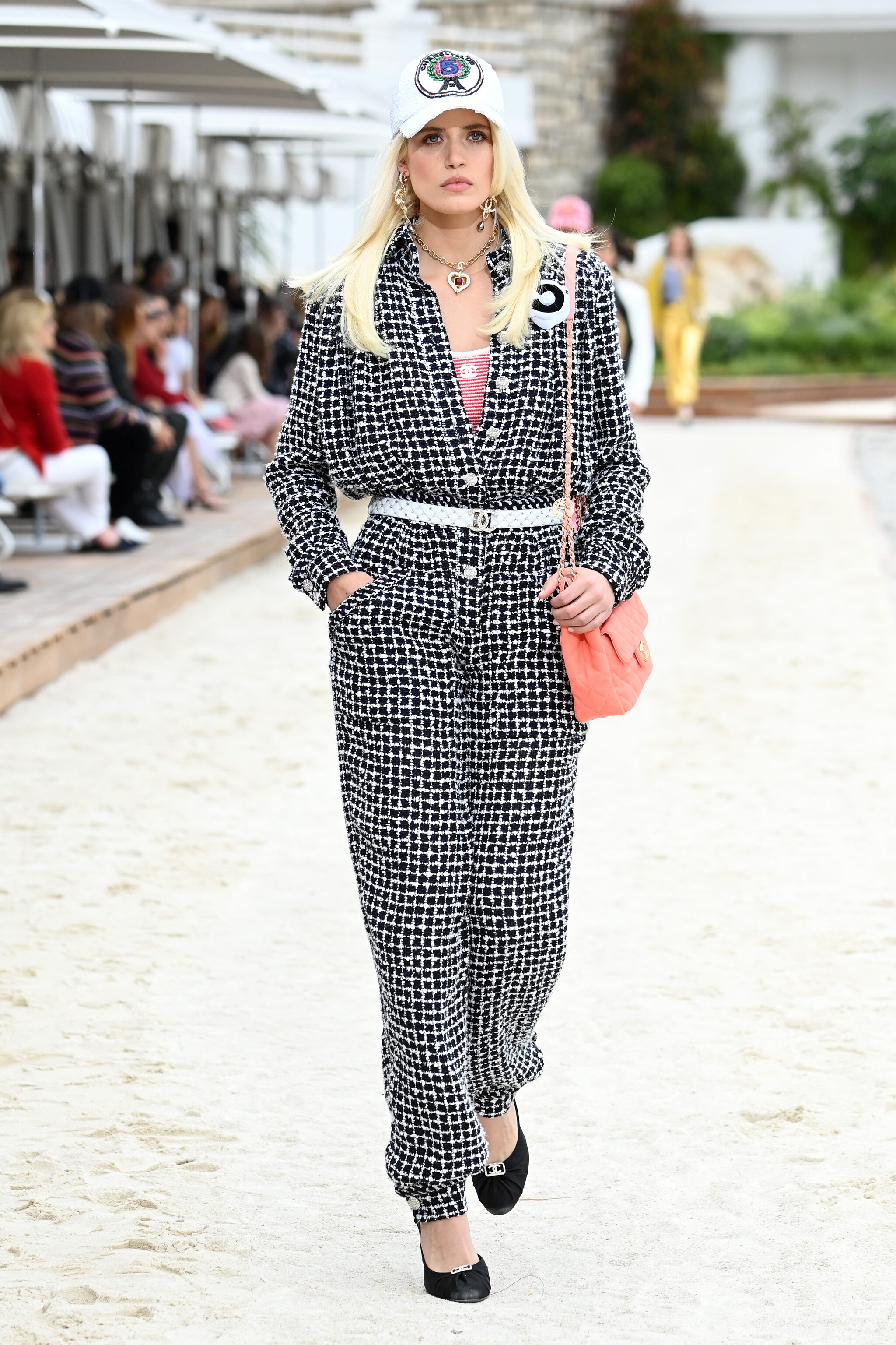 Il 5 maggio 2022 Chanel ha presentato la collezione Cruise 2022/2023 con una sfilata sulla spiaggia a Montecarlo. In passerella tute all over ispirate al Gran Premio di Formula1, giacche in lamé, abiti di paillettes e l'iconico tailleur in tweed in bianco e rosa, indossato con le sneakers.