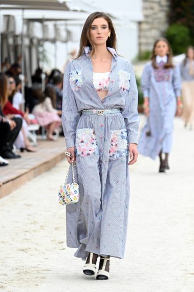 Il 5 maggio 2022 Chanel ha presentato la collezione Cruise 2022/2023 con una sfilata sulla spiaggia a Montecarlo. In passerella tute all over ispirate al Gran Premio di Formula1, giacche in lamé, abiti di paillettes e l'iconico tailleur in tweed in bianco e rosa, indossato con le sneakers.