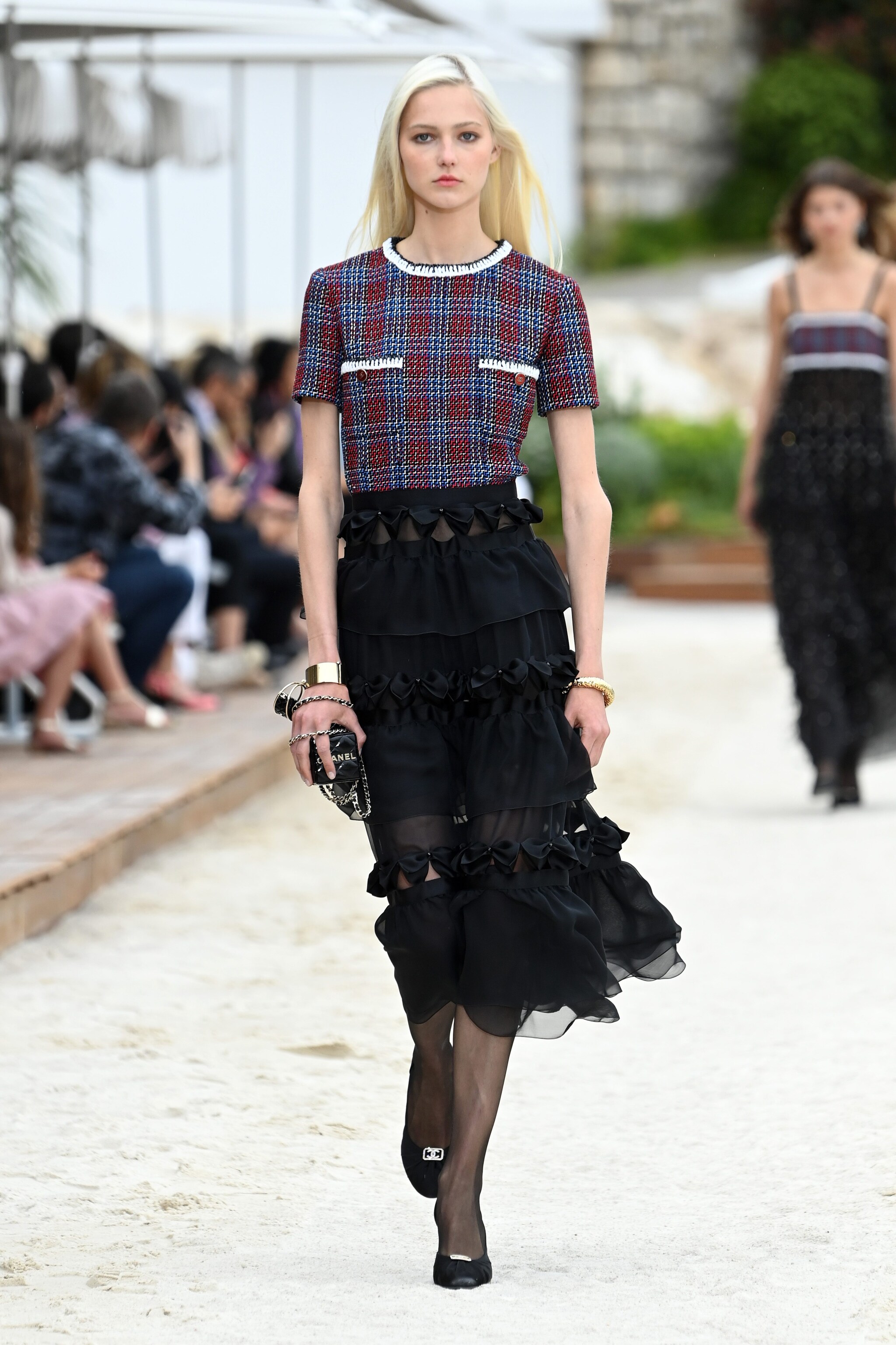 Il 5 maggio 2022 Chanel ha presentato la collezione Cruise 2022/2023 con una sfilata sulla spiaggia a Montecarlo. In passerella tute all over ispirate al Gran Premio di Formula1, giacche in lamé, abiti di paillettes e l'iconico tailleur in tweed in bianco e rosa, indossato con le sneakers.