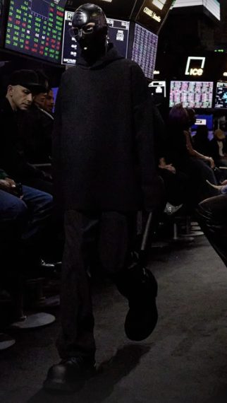 Completi austeri, scarpe dai volumi esagerati, abiti di paillettes e abbigliamento sportivo: