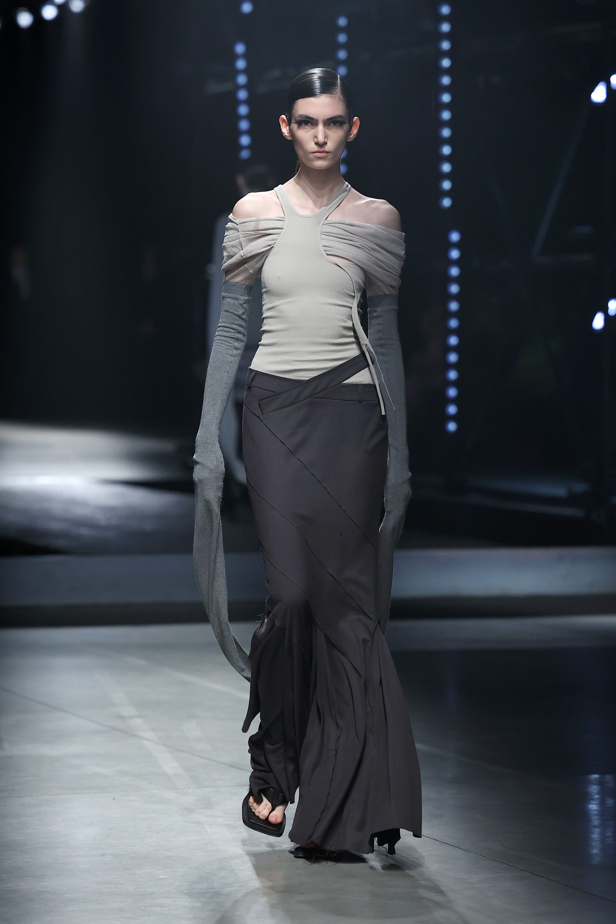 Abiti seconda pelle che fasciano la silhouette, avvolgenti cappotti furry, giacche pitonate e tutine trasparenti: la sfilata "sotto la pioggia" di AndreAdamo è stata il trionfo della sensualità.