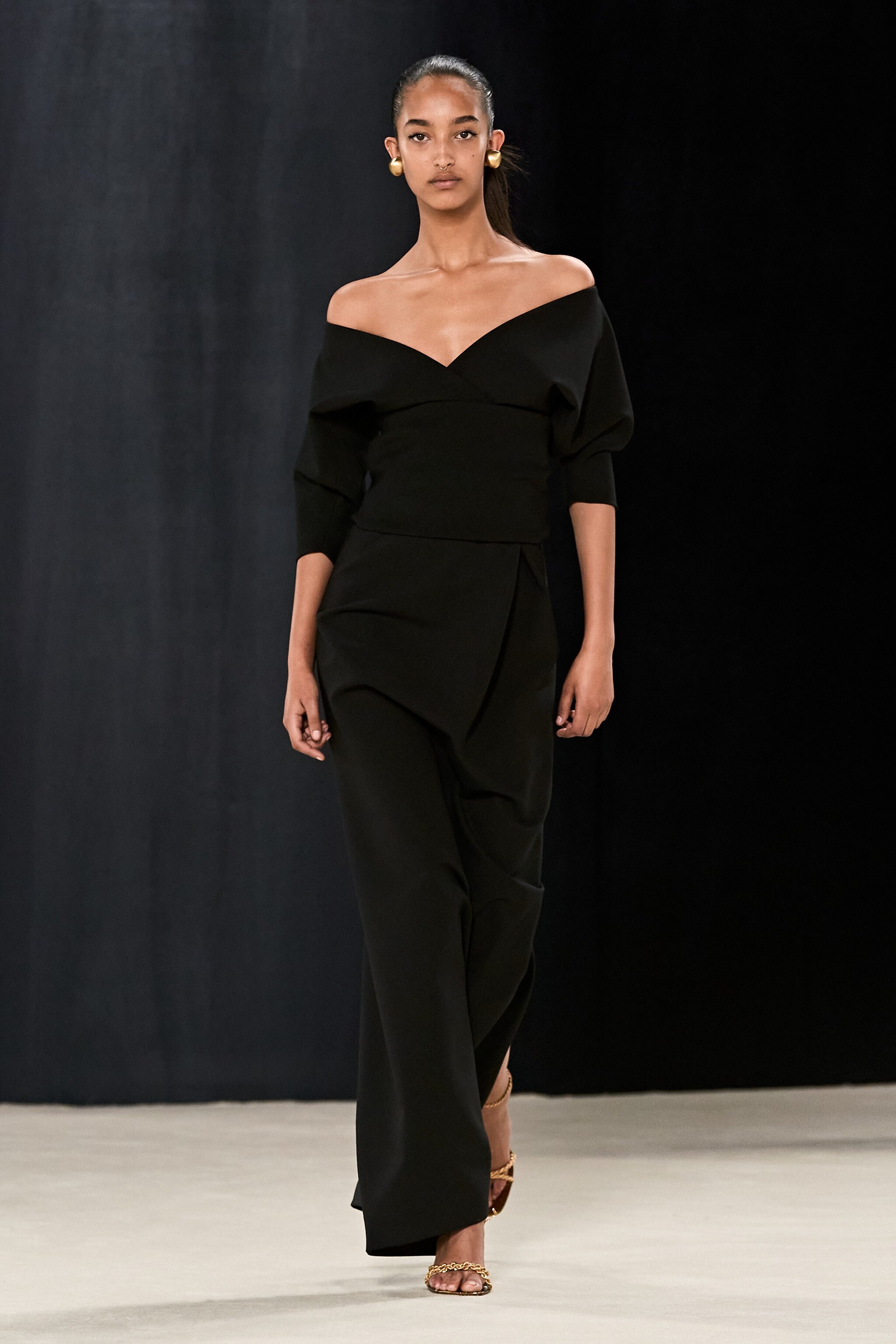 Abiti drappeggiati dai colori accesi, cappotti a pelo lungo, dolcevita rosso fuoco e giacche avvitate nei toni del blu e del grigio: la sfilata co-ed Autunno/Inverno 2023-24 di Ferragamo by Maximilian Davis si ispira alla vecchia Hollywood.