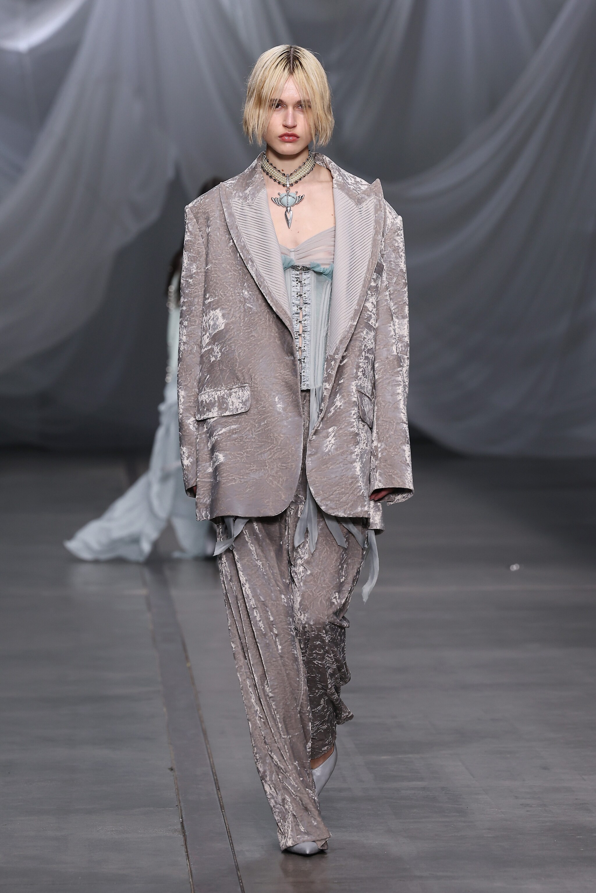 Candidi abiti destrutturati, maxi stivali, cappotti a pelo lungo e tute aderenti sfilano sulla passerella Autunno/Inverno 2023-24 di Aniye Records.