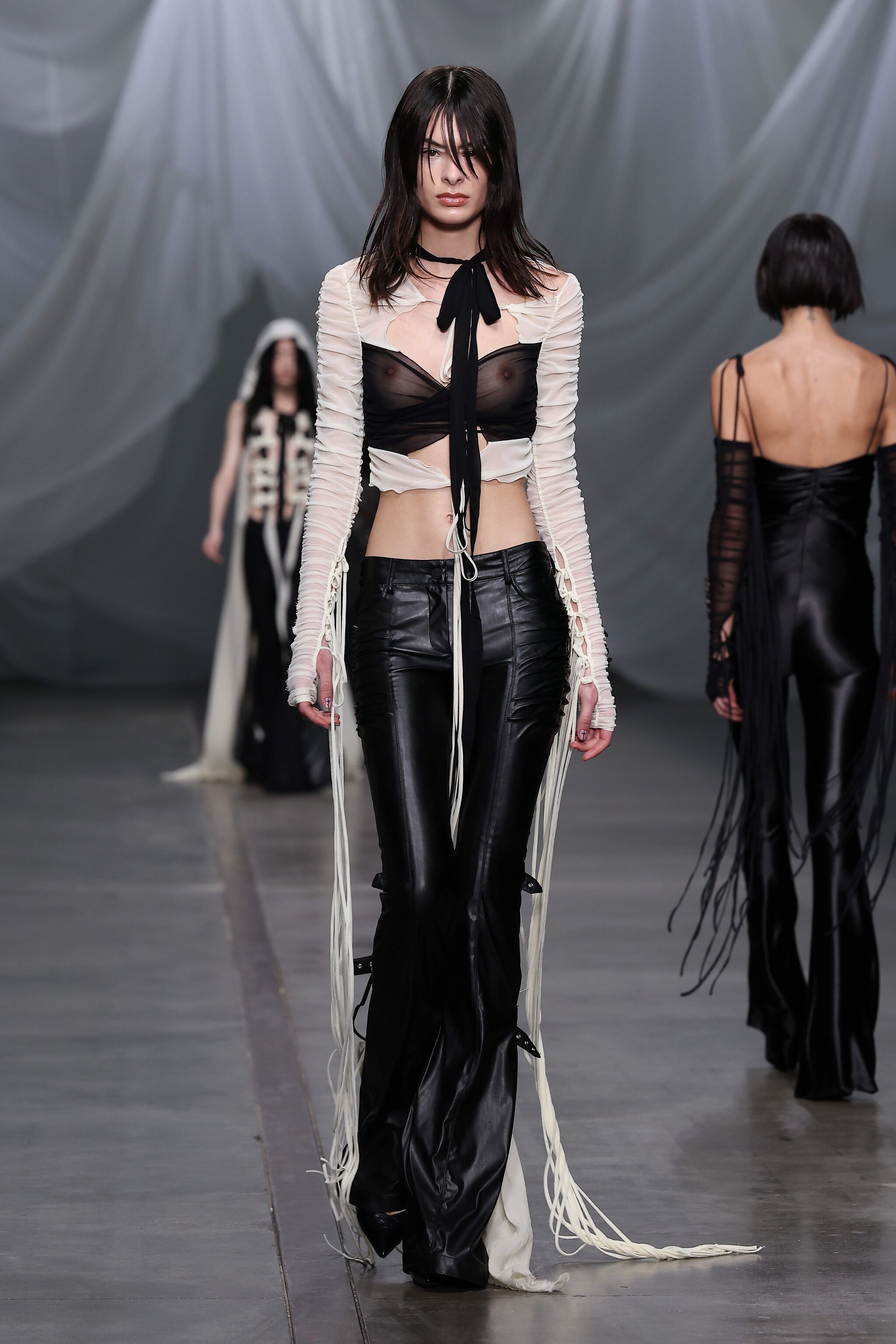 Candidi abiti destrutturati, maxi stivali, cappotti a pelo lungo e tute aderenti sfilano sulla passerella Autunno/Inverno 2023-24 di
