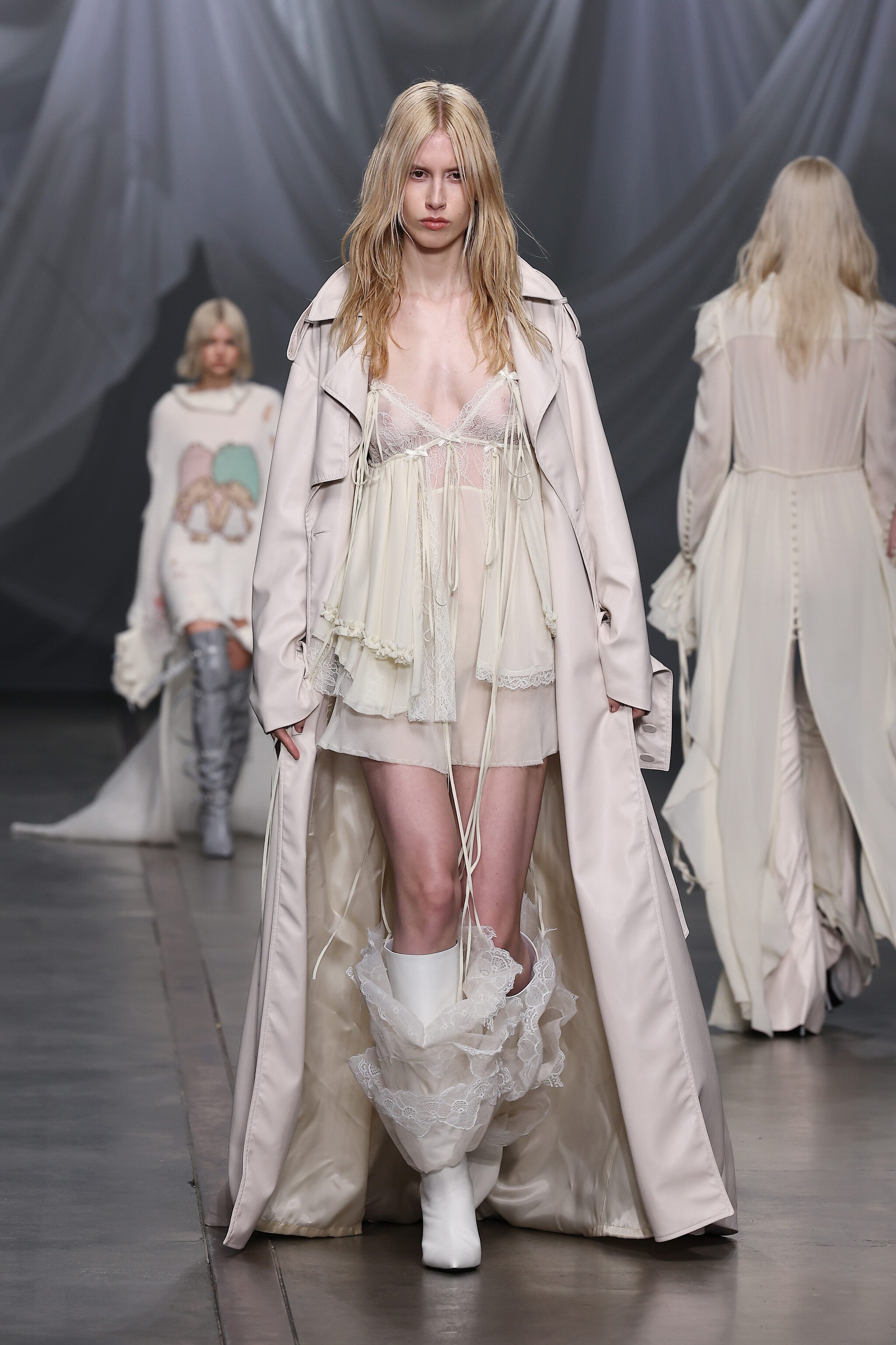 Candidi abiti destrutturati, maxi stivali, cappotti a pelo lungo e tute aderenti sfilano sulla passerella Autunno/Inverno 2023-24 di