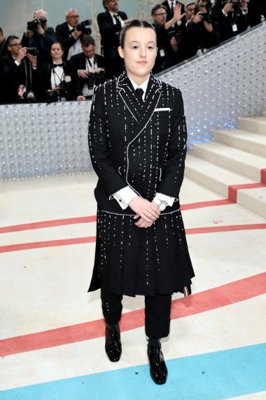 Bella Ramsey in Thom Browne con orologio Hublot