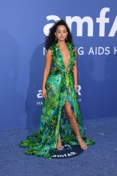 • Léna Mahfouf in Versace con gioielli Chopare