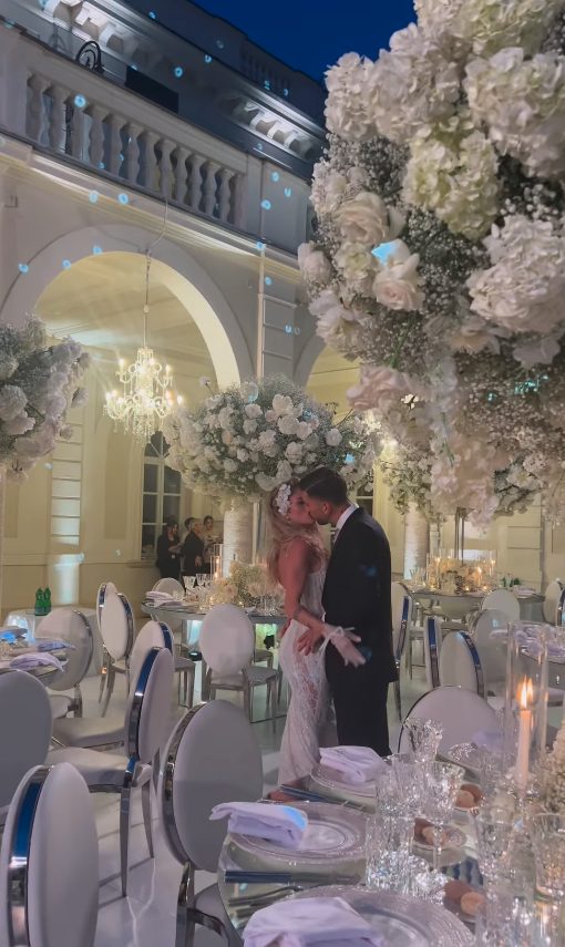 L'influencer Chiara Nasti e il calciatore Mattia Zaccagni si sono sposati a Roma: per l'occasione la sposa ha sfoggiato tre abiti diversi, dal pizzo romantico per la cerimonia alla minigonna drappeggiata per la festa.