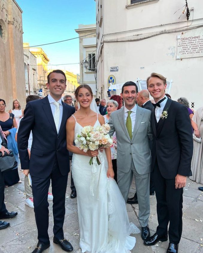 Timofej Andrijashenko e Nicoletta Manni, entrambi ballerini della Scala di Milano, si sono sposati giovedì 10 agosto. Si sono detti sì in Salento, la terra d'origine della sposa. Prima si è svolto il rito religioso nella suggestiva basilica di Santa Caterina a Galatina e poi la coppia e gli invitati si sono spostati per il ricevimento a Masseria San Lorenzo. La sposa ha rispettato la tradizione dell'abito bianco, un'elegante creazione con maxi velo dai dettagli in pizzo. Poi per il ricevimento, la coppia ha danzato un tango: abito con spalle nude, maxi spacco e cristalli per l'étoile.