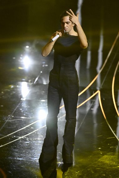 • Il look di Mahmood per la prima serata di Sanremo 2024