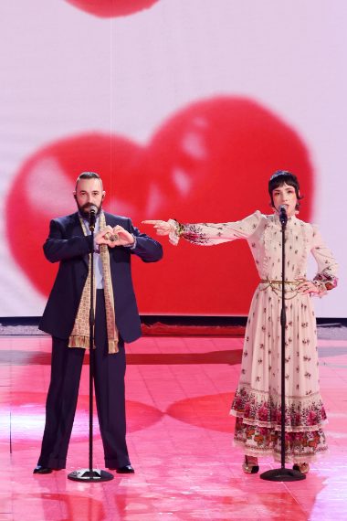 La conduttrice ha sfoggiato un vestito da dea per la prima parte della cerimonia, per poi fare un cambio drastico e optare per un outfit accattivante caratterizzato dalle un effetto vedo non-vedo.