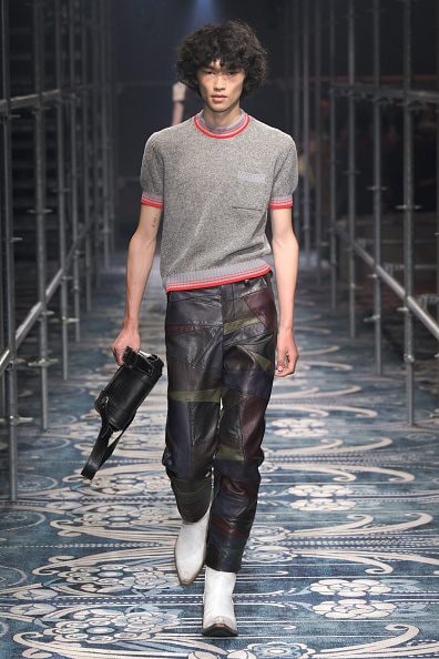 Alla Milano Fashion Week, sulla passerella uomo Autunno/Inverno 2025-2026 di Prada, le stampe check e tartan, i colori pastello e le linee asciutte si mescolano con patchwork di pelliccia, frange, completi in pelle e boots da cowboy, tutti dettagli che citano in maniera ironica lo stile texano creando un crash di stili opposti