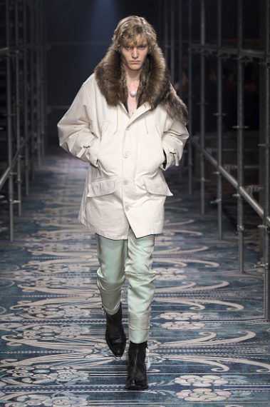 Alla Milano Fashion Week, sulla passerella uomo Autunno/Inverno 2025-2026 di Prada, le stampe check e tartan, i colori pastello e le linee asciutte si mescolano con patchwork di pelliccia, frange, completi in pelle e boots da cowboy, tutti dettagli che citano in maniera ironica lo stile texano creando un crash di stili opposti