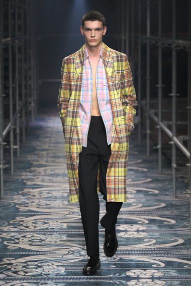Alla Milano Fashion Week, sulla passerella uomo Autunno/Inverno 2025-2026 di Prada, le stampe check e tartan, i colori pastello e le linee asciutte si mescolano con patchwork di pelliccia, frange, completi in pelle e boots da cowboy, tutti dettagli che citano in maniera ironica lo stile texano creando un crash di stili opposti