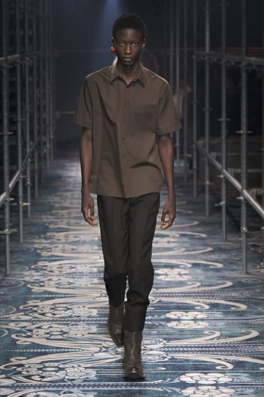 Alla Milano Fashion Week, sulla passerella uomo Autunno/Inverno 2025-2026 di Prada, le stampe check e tartan, i colori pastello e le linee asciutte si mescolano con patchwork di pelliccia, frange, completi in pelle e boots da cowboy, tutti dettagli che citano in maniera ironica lo stile texano creando un crash di stili opposti