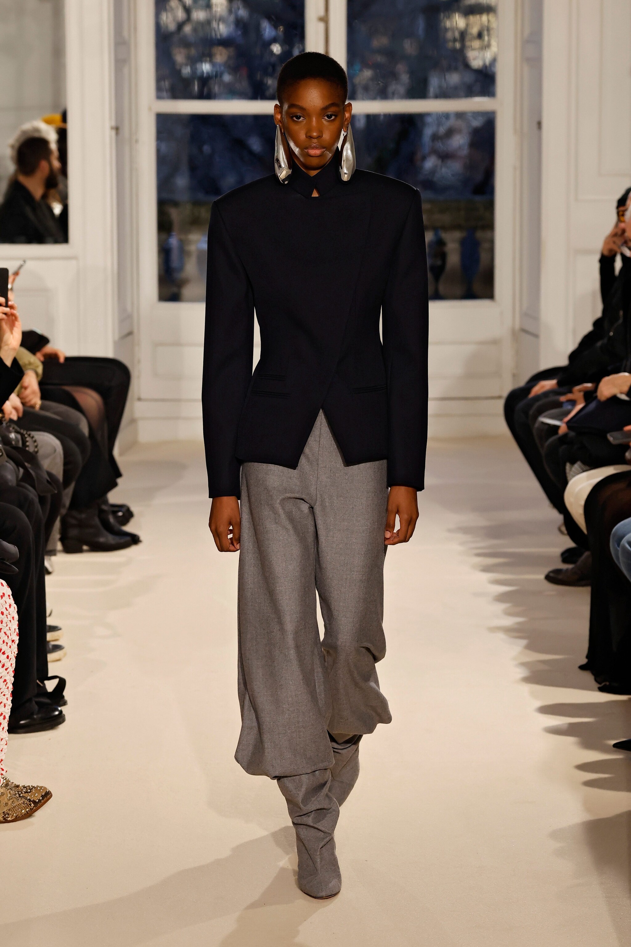 Abiti tulipano e morbidi vestiti mono spalla, look total black o illuminati con cristalli rosa, cascate di frange e pantaloni in velluto sfilano nella collezione Haute Couture Primavera/Estate 2025 di Alexandre Vauthier alla Paris Fashion Week