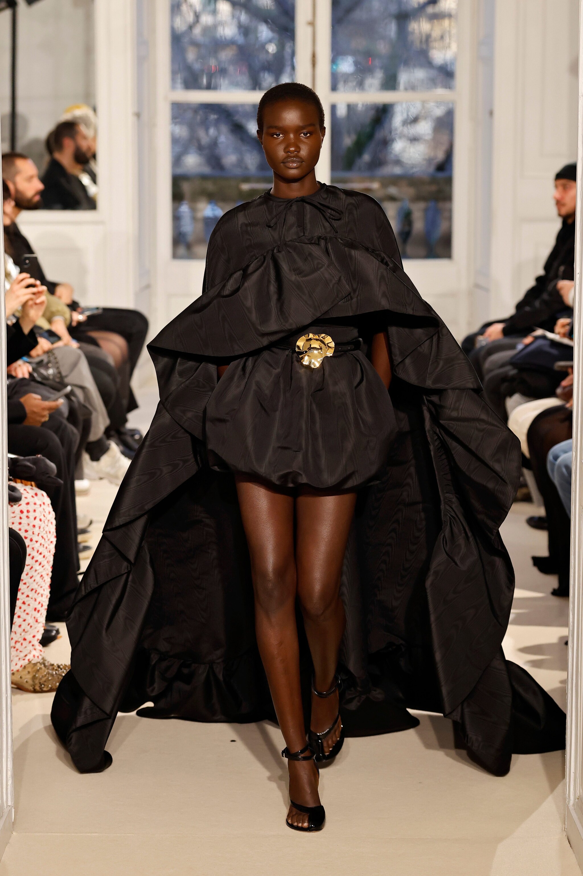 Abiti tulipano e morbidi vestiti mono spalla, look total black o illuminati con cristalli rosa, cascate di frange e pantaloni in velluto sfilano nella collezione Haute Couture Primavera/Estate 2025 di Alexandre Vauthier alla Paris Fashion Week