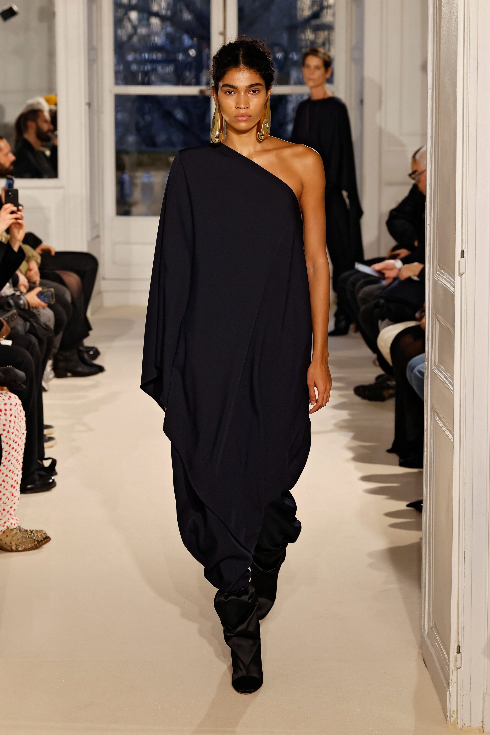 Abiti tulipano e morbidi vestiti mono spalla, look total black o illuminati con cristalli rosa, cascate di frange e pantaloni in velluto sfilano nella collezione Haute Couture Primavera/Estate 2025 di Alexandre Vauthier alla Paris Fashion Week