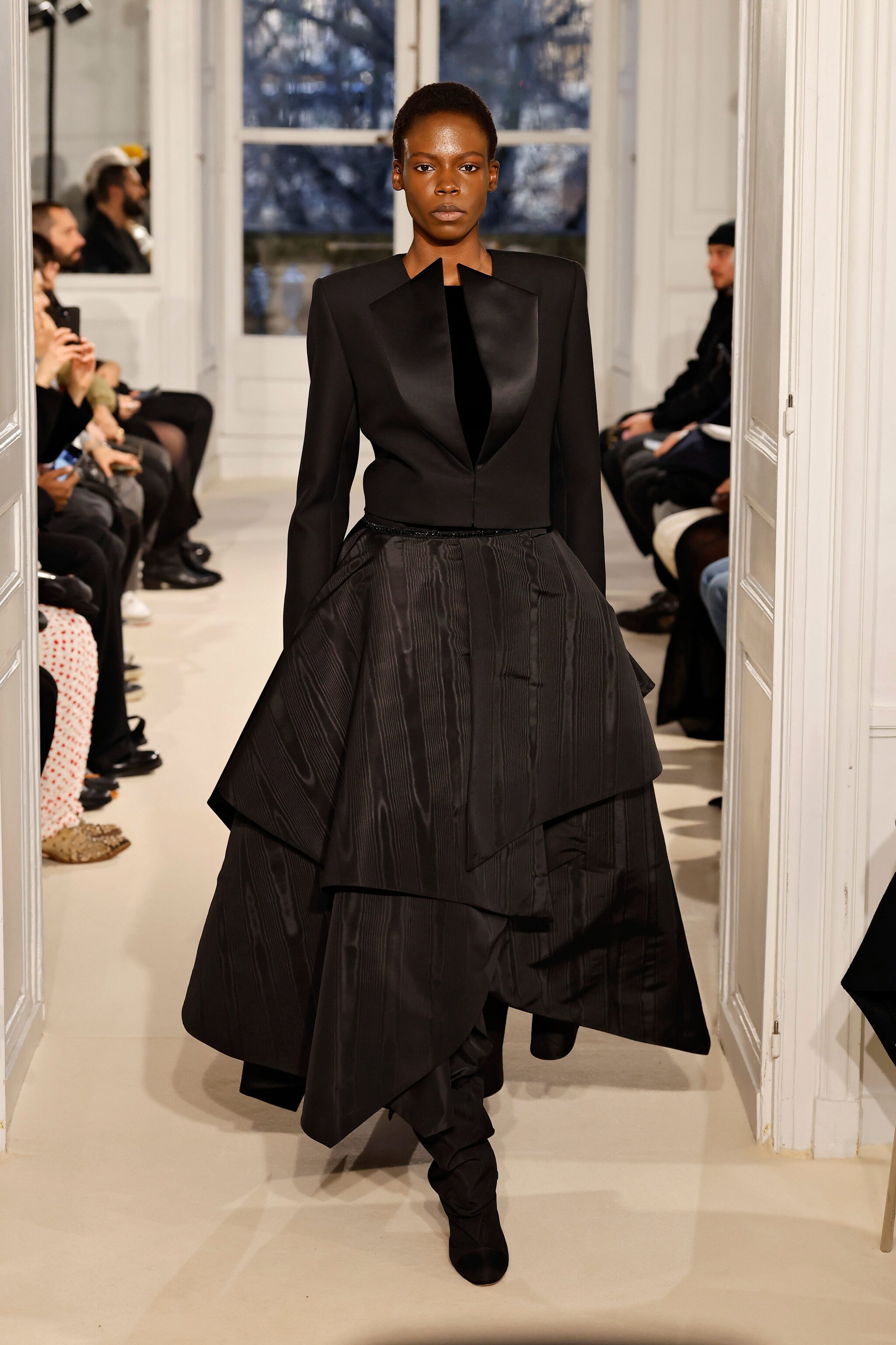 Abiti tulipano e morbidi vestiti mono spalla, look total black o illuminati con cristalli rosa, cascate di frange e pantaloni in velluto sfilano nella collezione Haute Couture Primavera/Estate 2025 di Alexandre Vauthier alla Paris Fashion Week