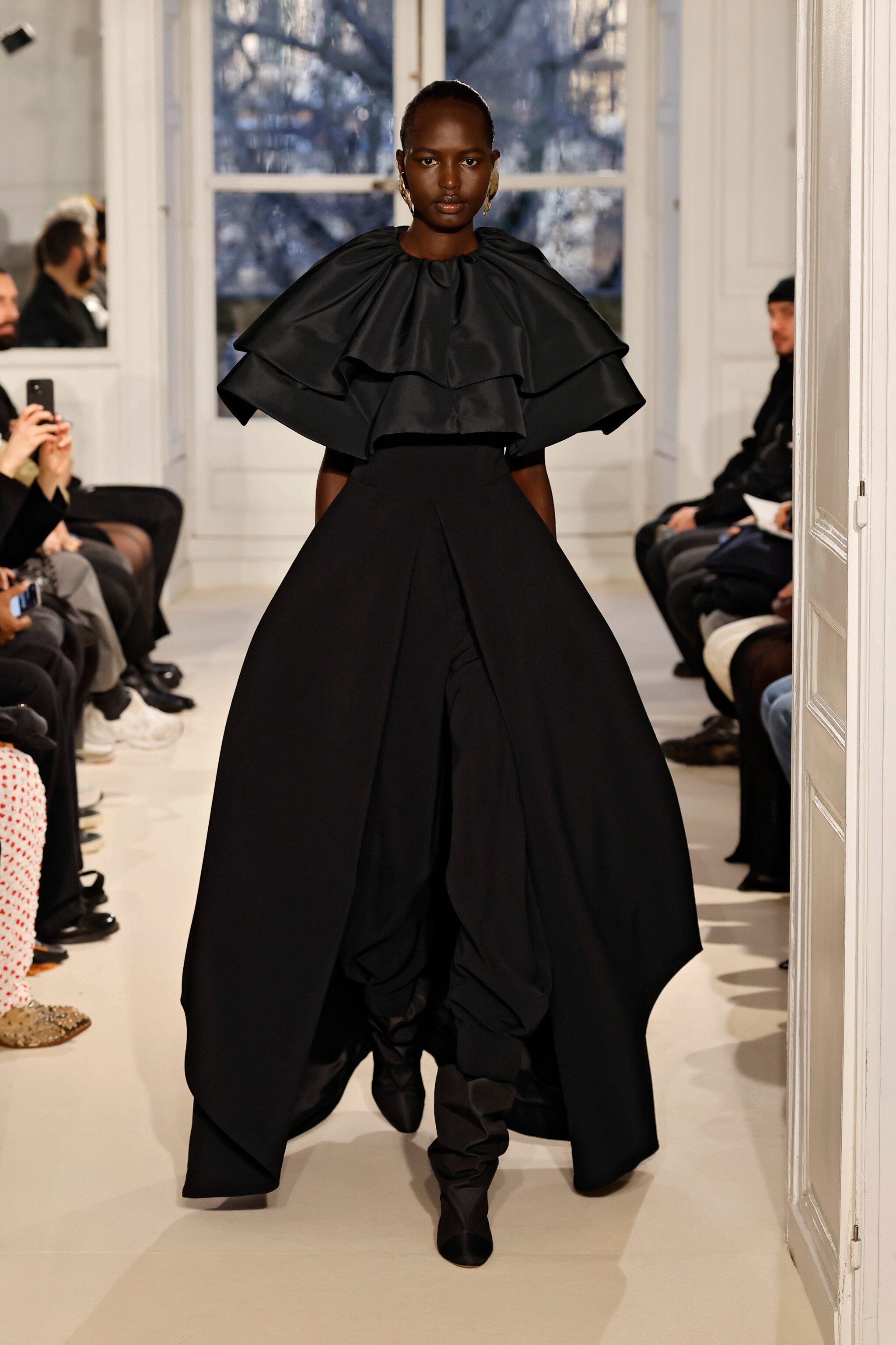 Abiti tulipano e morbidi vestiti mono spalla, look total black o illuminati con cristalli rosa, cascate di frange e pantaloni in velluto sfilano nella collezione Haute Couture Primavera/Estate 2025 di Alexandre Vauthier alla Paris Fashion Week
