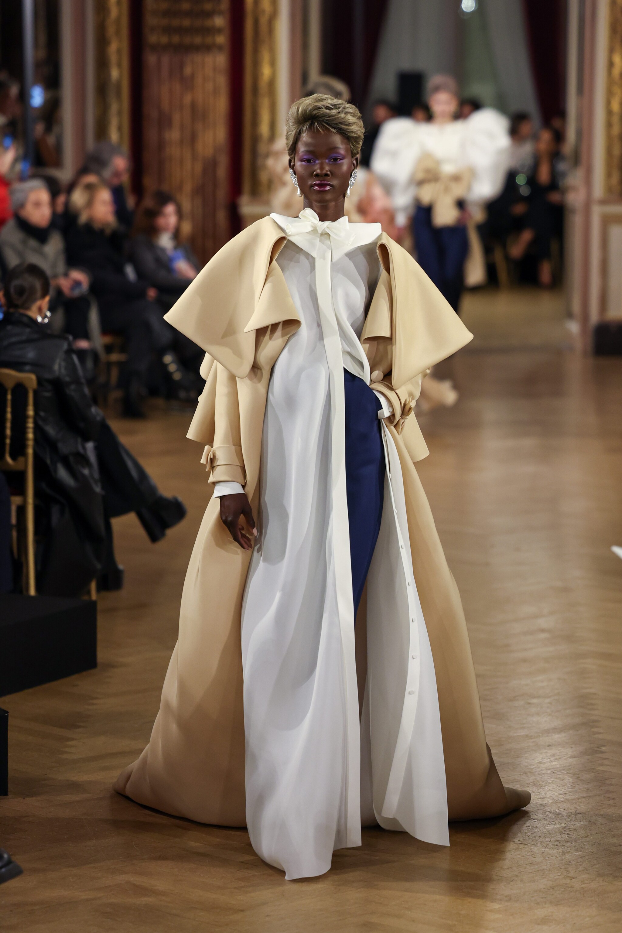 Enormi fiocchi, trench decostruiti, capi ricoperti da tessuti a onda, drappeggi e volumi maxi sfilano alla Paris Fashion Week sulla passerella Haute Couture Primavera/Estate 2025 di Viktor&Rolf