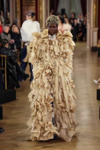 Enormi fiocchi, trench decostruiti, capi ricoperti da tessuti a onda, drappeggi e volumi maxi sfilano alla Paris Fashion Week sulla passerella Haute Couture Primavera/Estate 2025 di Viktor&Rolf