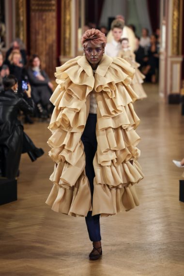 Enormi fiocchi, trench decostruiti, capi ricoperti da tessuti a onda, drappeggi e volumi maxi sfilano alla Paris Fashion Week sulla passerella Haute Couture Primavera/Estate 2025 di Viktor&Rolf