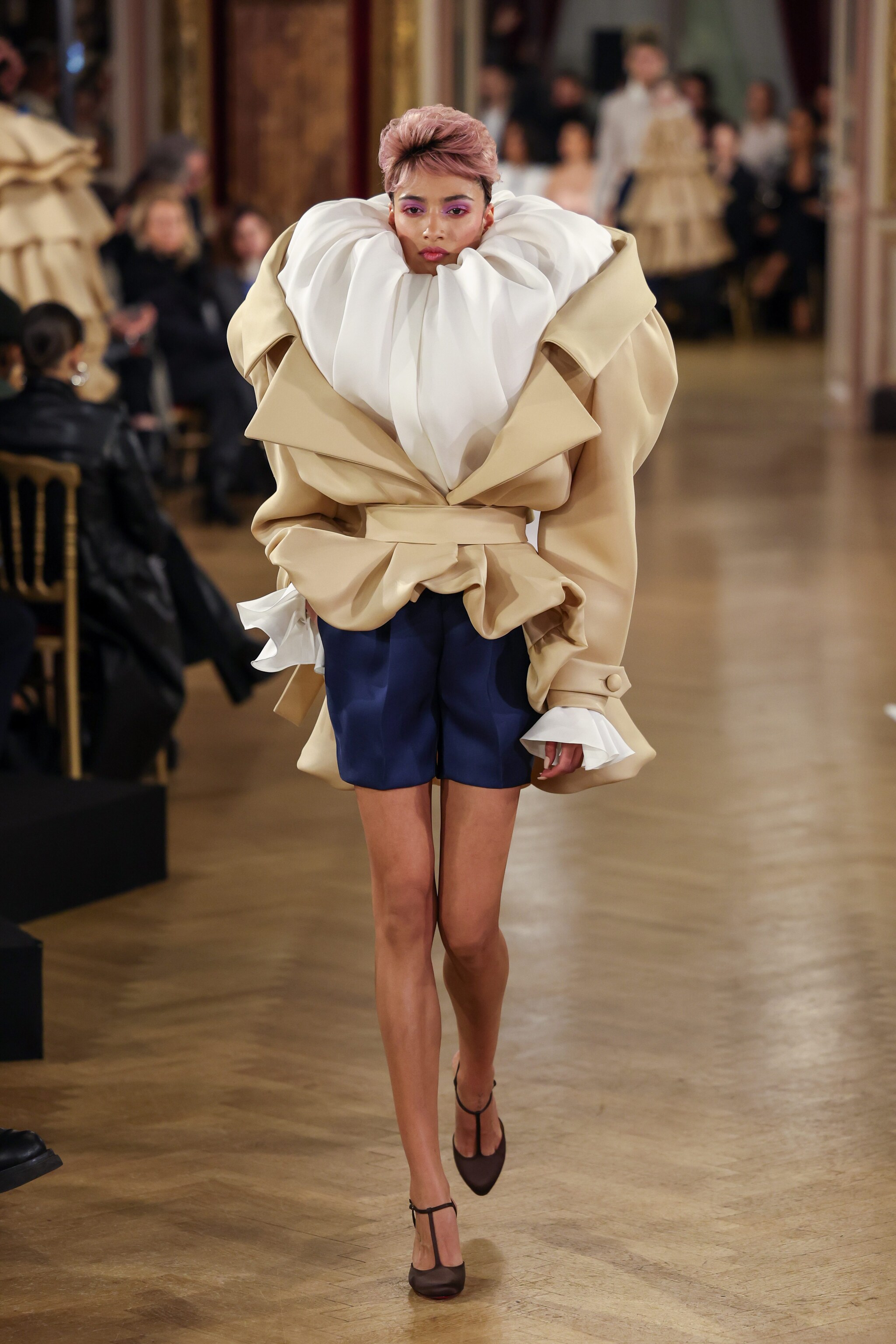 Enormi fiocchi, trench decostruiti, capi ricoperti da tessuti a onda, drappeggi e volumi maxi sfilano alla Paris Fashion Week sulla passerella Haute Couture Primavera/Estate 2025 di Viktor&Rolf
