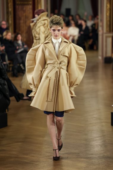 Enormi fiocchi, trench decostruiti, capi ricoperti da tessuti a onda, drappeggi e volumi maxi sfilano alla Paris Fashion Week sulla passerella Haute Couture Primavera/Estate 2025 di Viktor&Rolf