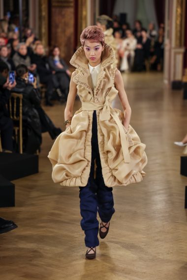 Enormi fiocchi, trench decostruiti, capi ricoperti da tessuti a onda, drappeggi e volumi maxi sfilano alla Paris Fashion Week sulla passerella Haute Couture Primavera/Estate 2025 di Viktor&Rolf
