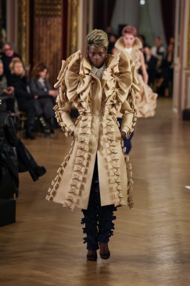 Enormi fiocchi, trench decostruiti, capi ricoperti da tessuti a onda, drappeggi e volumi maxi sfilano alla Paris Fashion Week sulla passerella Haute Couture Primavera/Estate 2025 di Viktor&Rolf