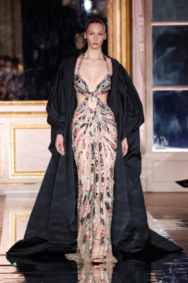 Colori accesi e tonalità pastello si mescolano con decori barocchi, drappeggi e cristalli sulla passerella Haute Couture Primavera/Estate 2025 di Zuhair Murad alla Paris Fashion Week
