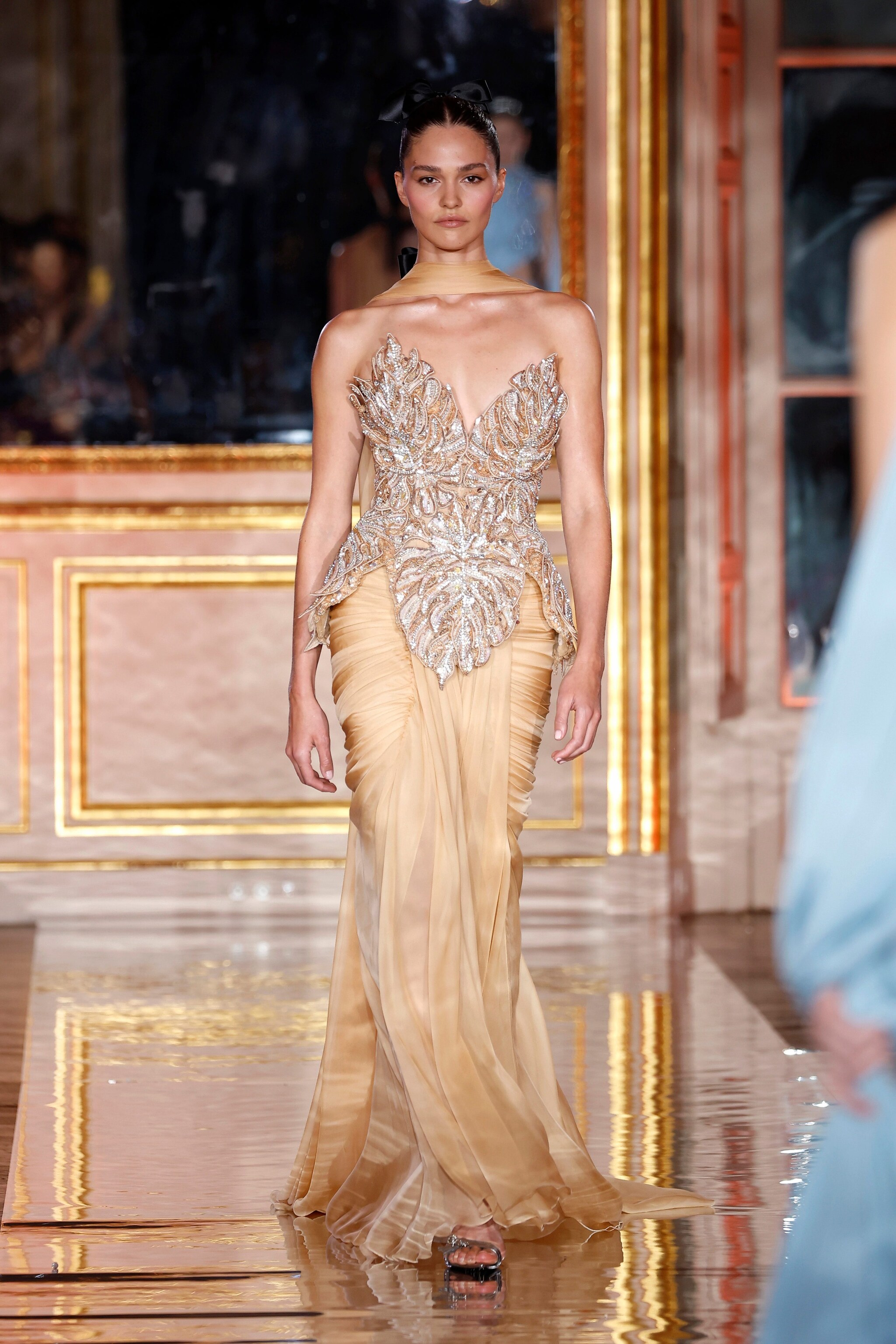 Colori accesi e tonalità pastello si mescolano con decori barocchi, drappeggi e cristalli sulla passerella Haute Couture Primavera/Estate 2025 di Zuhair Murad alla Paris Fashion Week