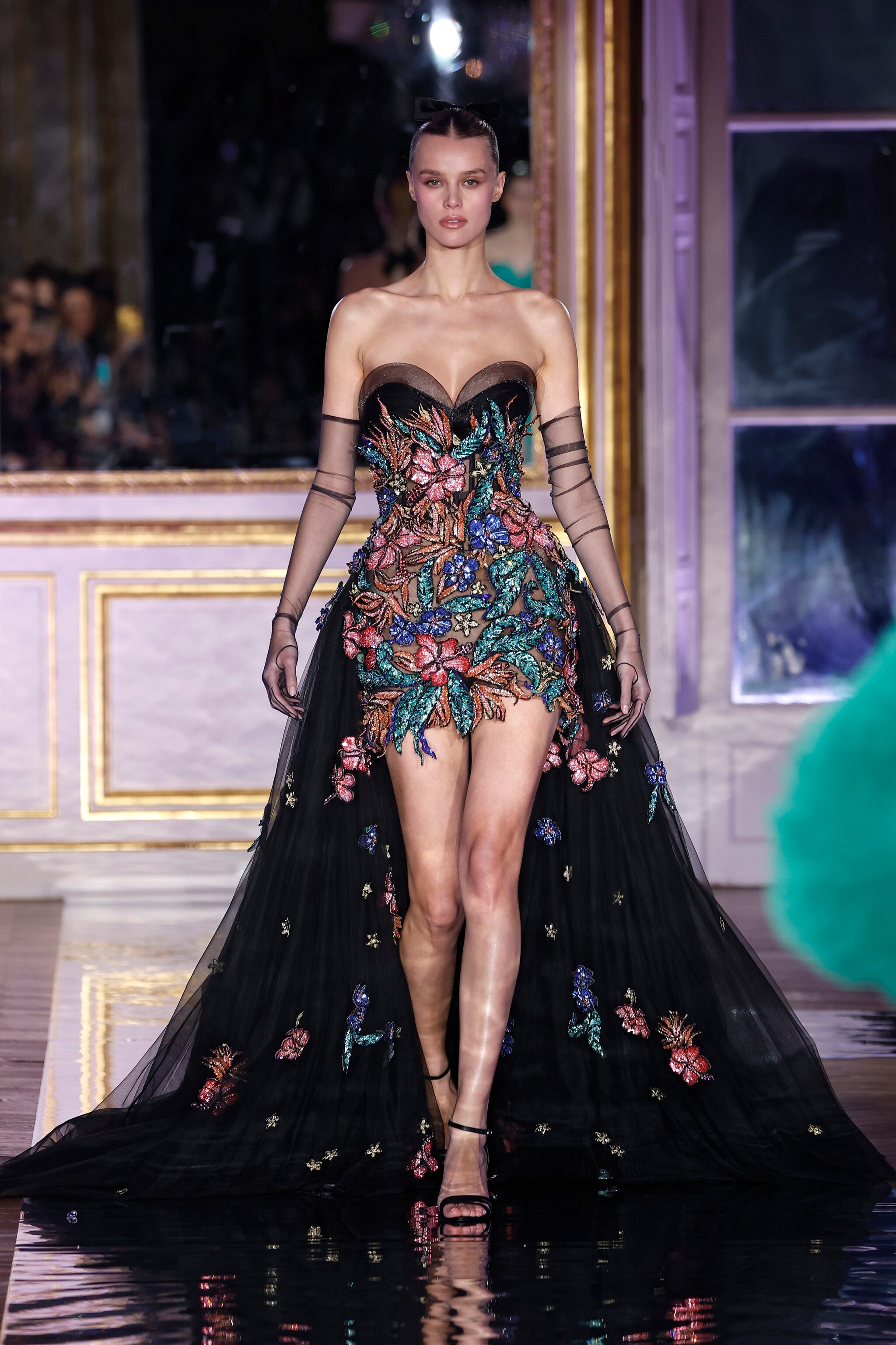 Colori accesi e tonalità pastello si mescolano con decori barocchi, drappeggi e cristalli sulla passerella Haute Couture Primavera/Estate 2025 di Zuhair Murad alla Paris Fashion Week
