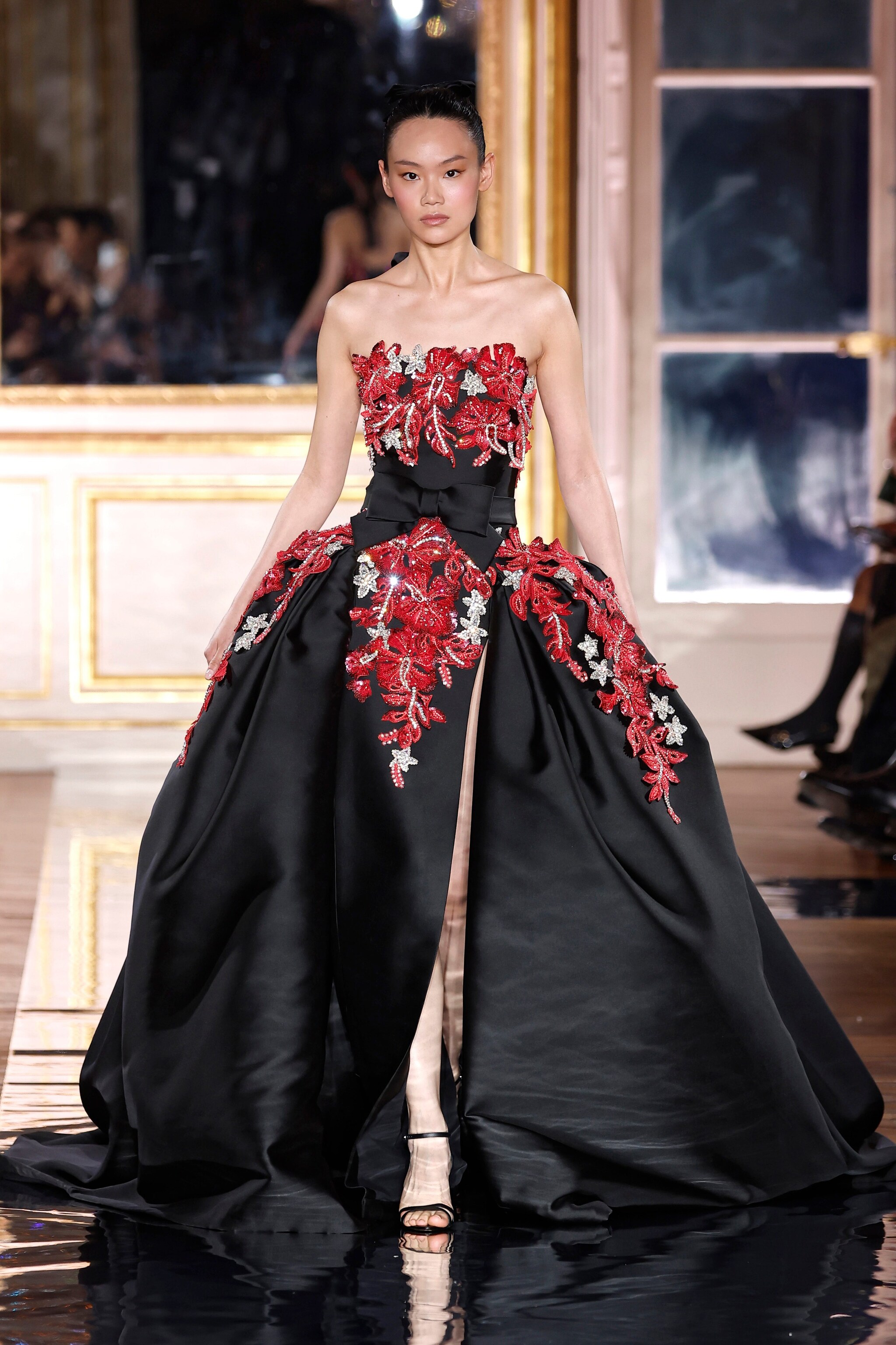 Colori accesi e tonalità pastello si mescolano con decori barocchi, drappeggi e cristalli sulla passerella Haute Couture Primavera/Estate 2025 di Zuhair Murad alla Paris Fashion Week