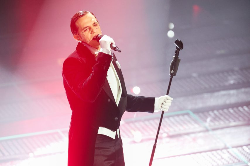 • Francesco Gabbani in Corneliani con scarpe Santoni