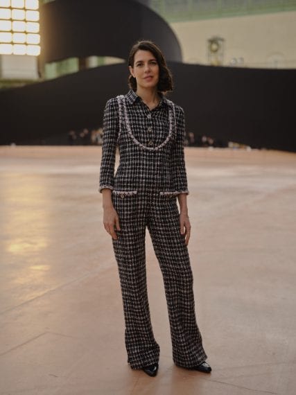 Charlotte Casiraghi con la salopette in tweed: è lei la più chic delle sfilate di Parigi