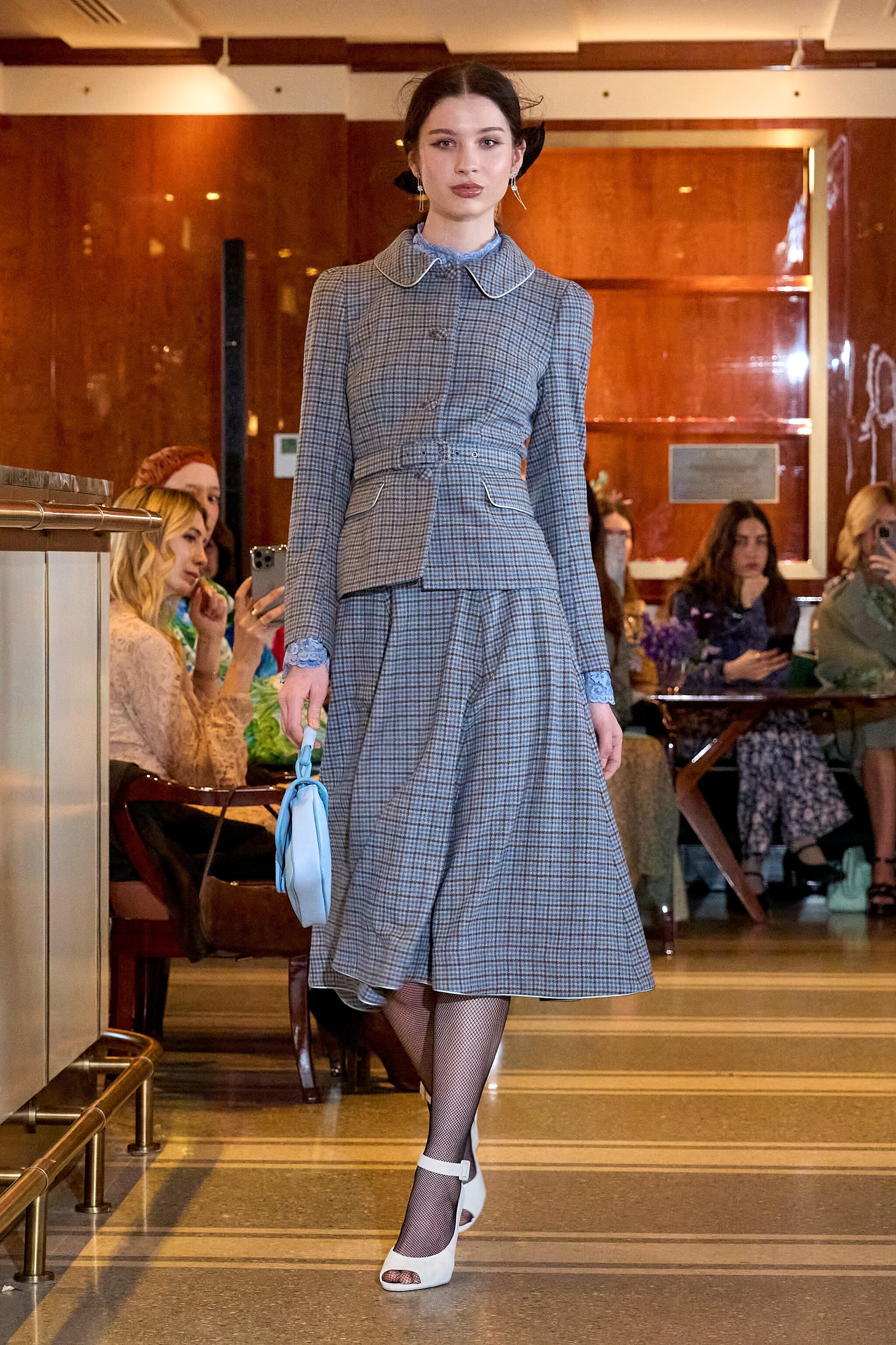 Pizzi alternati a velluto, cristalli, fiori e pois, completi pantalone e outfit con mini pullover in lana e romantiche gonne a ruota sfilano alla Milano Fashion Week sulla passerella Autunno/Inverno 2025-2026 di Luisa Beccaria