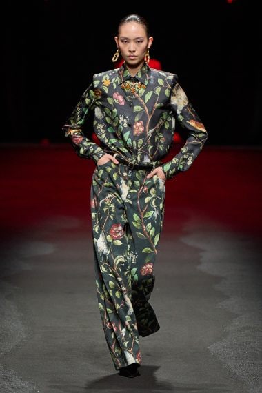 Fausto Puglisi celebra Pompei, i suoi affreschi e il tipico rosso pompeiano nella collezione Autunno/Inverno 2025-2026 disegnata per Roberto Cavalli in cui appaiono stampe con lava, look animalier e abiti in velluto