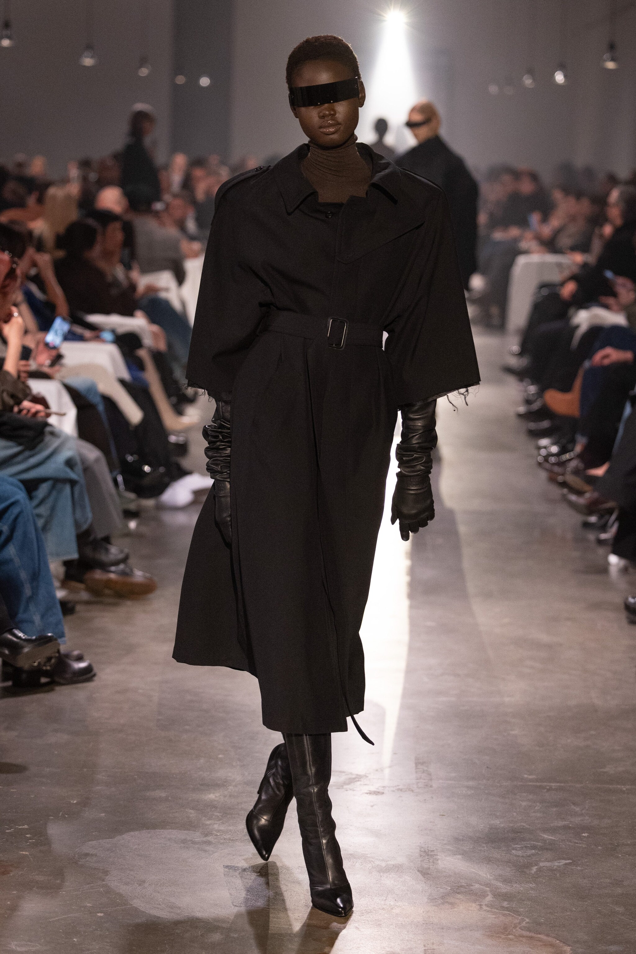 Polo e camicie dalle spalle appuntite abiti che sembrano trench, mini dress in suede e blazer oversize sfilano alla Milano Fashion Week sulla passerella Autunno/Inverno 2025-2026 di MM6 Maison Margiela.