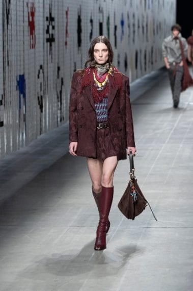 Le linee bold di colbacchi maxi, cappotti pelosi e bomber con frange in lana si mescolano con fantasie floreali, macro paillettes e colori forti come il giallo nella collezione Autunno/Inverno 2025-2026 disegnata da Marco De Vincenzo per Etro