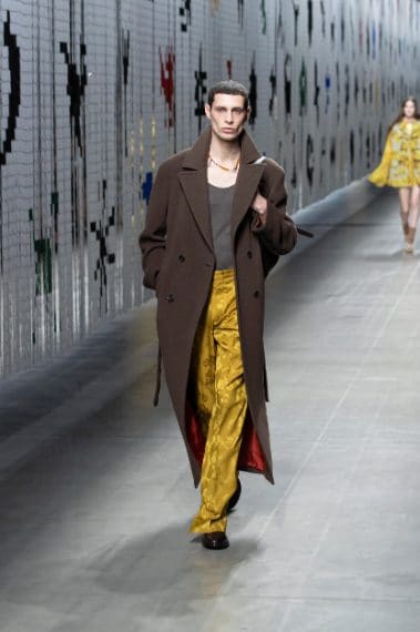 Le linee bold di colbacchi maxi, cappotti pelosi e bomber con frange in lana si mescolano con fantasie floreali, macro paillettes e colori forti come il giallo nella collezione Autunno/Inverno 2025-2026 disegnata da Marco De Vincenzo per Etro
