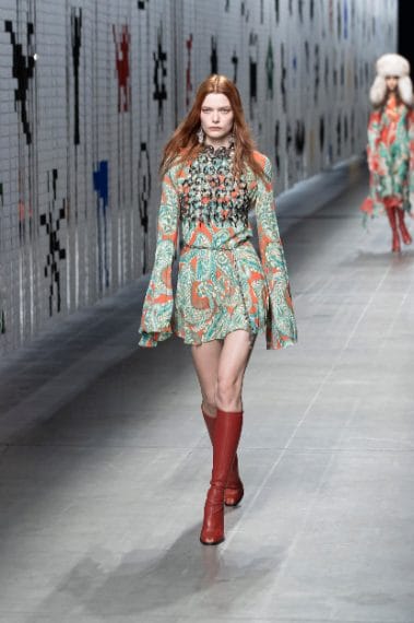 Le linee bold di colbacchi maxi, cappotti pelosi e bomber con frange in lana si mescolano con fantasie floreali, macro paillettes e colori forti come il giallo nella collezione Autunno/Inverno 2025-2026 disegnata da Marco De Vincenzo per Etro